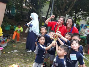 Every year IGTKI (Ikatan Guru Taman Kanak-kanak Indonesia) hold PORSENI (Pekan Olahraga dan Seni) competition for kindergartens around Pamulang. This was the second time Sekolah Harapan Bangsa Preschool joined the competitions.