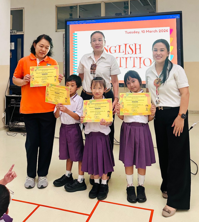 During the event, awards were presented to students who achieved first, second, and third place in the Speaking category in each class. Certificates were given as recognition of their effort, courage, and speaking skills when presenting in front of their classmates.