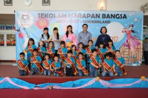 On Wednesday, October 4, 2107, Sekolah Harapan Bangsa Preschool – Modernland celebrated Mid-Autumn Festival with the theme “Chang E”. First, the students gathered in the playground, the MC of the event invited all the students from Kiddy Club level to Kindergarten B to get together and to watch a video about the origin of Mid-Autumn. Everyone also danced together to the tune of “wo men de yue liang yi ding yuan”. All students and teachers sang and danced happily. Next, we started the competitions that was divided into different levels such as puzzle contest for Kiddy Club students, coloring contest for Playgroup students, Kindergarten A had a singing and dancing comptetition while, Kindergarten B had poetry reading contest. Each and every student was very excited to join and confidently performed on the stage. The winners of each level get a special sash made for this event. The event ended with a share of “mooncake”. It's really amazing the children's performance at Mid-Autumn festival this year. Happy Mid-Autumn![:zh]