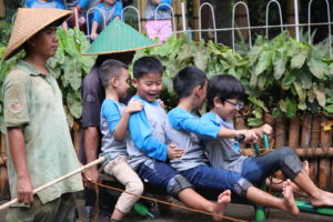At 2.00 pm we departed to school, even, it was rainy but teachers can handle the situation. Students put on their raincoat. At 4.00 o’clock we arrived at school. It was fun and students were enthusiastic.