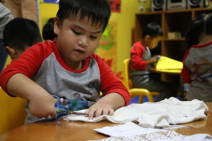 接下来,学生们被分为两个大组。第一组是幼儿园的学生(来自小小班至大班),使用废物品制作以下的物品: