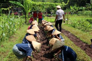 - Area tanam, mereka menanam bibit jagung. mereka diajarkan dari mencangkul tanah memasukkan biji dan menutup lubang itu dan menyiraminya dengan air. kotor pastinya tapi mereka semua mengatakan “KEREN”.