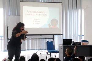 Therefore, on Friday, September 14th 2018, the school counsellor held a seminar with the theme “Aku Bisa, Aku Hebat” and Mrs.Debora Basaria, M.Psi, Psikolog as the speaker. This seminar aims to help and support students fulfilling their development task and function for self sufficient and social skill.