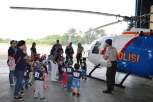 On this occasion all students were introduced to various planes and helicopters owned by Air Police Station and they tried to ride on the plane there. All children were happy and excited in participating in this event even though they walked around from one place to another place to see the planes and helicopters.