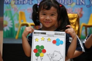 On the next day, it was a Mandarin and English day. In the morning we gathered in the hall to have a Collage Competition held by Mombi. After that we went to each class to do the Mandarin and English competitions. The Mandarin Competition for the small classes (Kiddy Club and Play Group) was to make a “Panda Mask”. For the big classes (KA and KB), made a bookmark. For the English Competition, there was an information gap competition” for all levels.