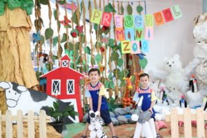 幼儿园小小班和小班的主题为在寒冷地方的动物,而幼儿园中班的主题为野生动物,幼儿园大班的主题为农场动物。所有的学生轮流地在旧塑料瓶,纸板和旧报纸制作的动物上涂色。这些假动物包括:北极熊,企鹅,长颈鹿,鳄鱼,斑马,猪,驴和孔雀。