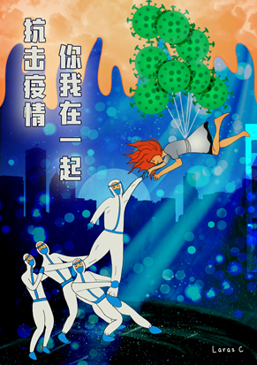 在那张海报中,我想向世界展示医务人员与冠状病毒的斗争。