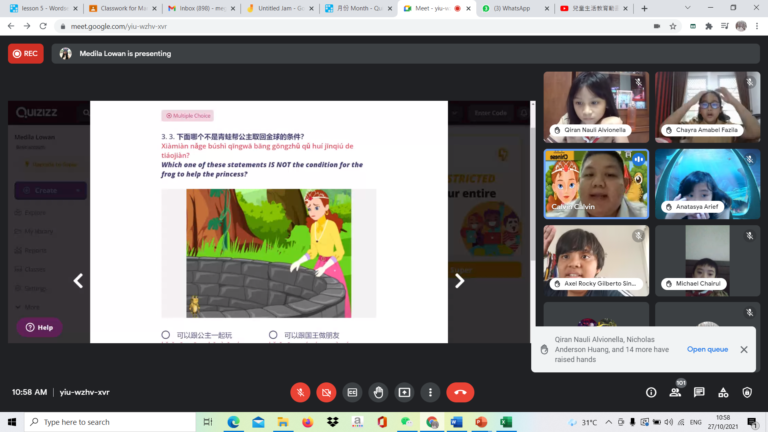 The duration of Our Book Days activity was 50 minutes for 3 consecutive days. The primary school students were grouped into 3 Google meet classrooms – (Grade 1 & 2), (Grade 3 & 4), and (Grade 5 & 6). Each day each Google classroom would engage in either English, Mandarin or Bahasa Indonesia activity until all grade levels finish their 3 languages Book Days experience.