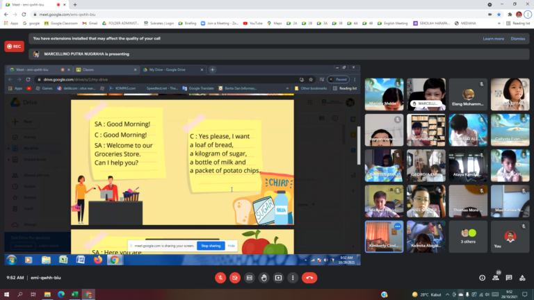 For English, students learn to make Animal Riddles and masks, practiced real-time conversation, made posters using the Canva program, and also brainstormed ideas to make a storyboard. For Mandarin, our colorful and bubbly Mandarin teachers let the students watch a short film about a popular Chinese folk tale. After viewing the film, the teachers translated the story using Bahasa Indonesia. As for Bahasa Indonesia, students read a short story about popular Indonesian myths and then answered some discussion questions provided by the teachers.