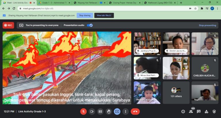 Seluruh peserta sangat antusias mengikuti kegiatan ini, dan juga siswa ikut menyanyikan lagu perjuangan mengikuti video dalam cerita, siswa dapat mengetahui sejarah hari pahlawan dengan lebih jelas dan visualisasi yang mudah dimengerti.