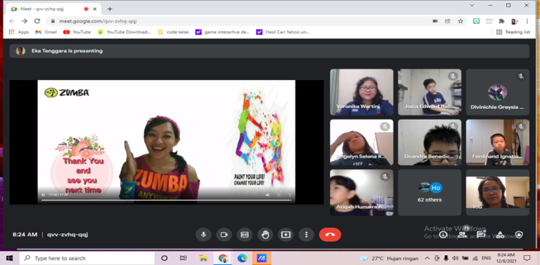 虽然活动以虚拟方式进行,但是所有的参加者都很积极的参加。民望学校小学部向Luh Gede Adhelia S.M 同学的家长 Zin Putu 女士通过尊巴舞视频参加了本次的体育日活动诚挚地表示谢意。