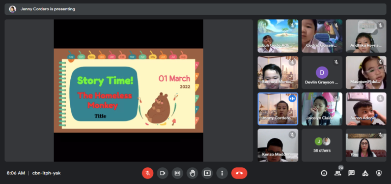 在疫情期间为了提升小学一年级学生对阅读的兴趣,现代城民望学校小学部举办了常规的阅读时间。本活动每逢星期四上午8点至8.25以线上方式举办。这是科目教师(Jenny Cordero老师)与各班级班主任合作举办的趣味活动。活动在谷歌会议中的小学一年级活动教室举办。