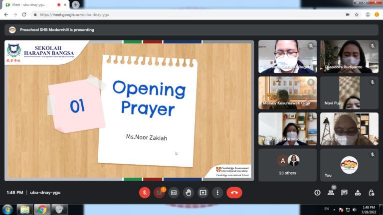 Every new academic year, Preschool Sekolah Harapan Bangsa holds PTM, parent’s teacher meetings. On 28th July 2022, all preschool teachers and parents join in the Google Meet link to listen to some of the presentations from our Principal.