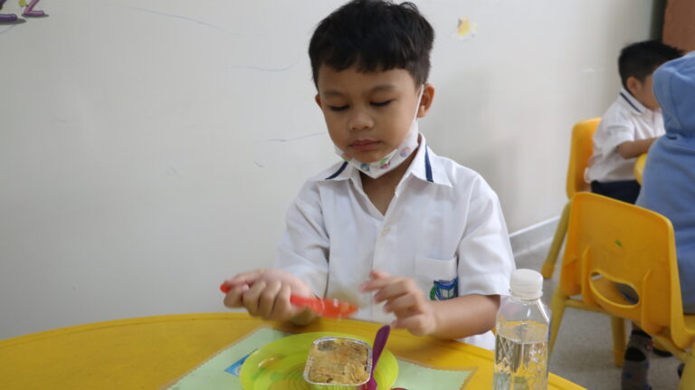 为了培养学生们的独立性并给他们介绍健康的饮食,民望学校幼儿园部举办了健康饮食日。在活动中,学生们学习如何用勺子,怎样切东西以及准时地将食物吃完。他们也学习如何用右手吃东西,饭后必须洗餐具。
