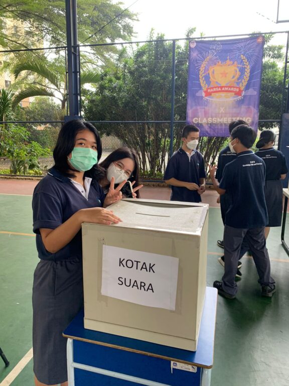 Pada tanggal 14 Desember 2022, para mahasiswa berkumpul di lapangan basket untuk mendengarkan kampanye yang disampaikan oleh para calon presiden dan wakil ketua OSIS. Kampanye tersebut meliputi pemaparan singkat tentang visi, misi, dan debat antar para kandidat. Seluruh siswa dan guru diperbolehkan untuk bertanya apa saja tentang program dan pandangan mereka tentang hal-hal yang berhubungan dengan sekolah. Setelah itu, tibalah waktunya untuk pemungutan suara. Setiap siswa dan guru berhak satu suara selama pemilihan. Calon dengan suara terbanyak suara terbanyak memenangkan pemilihan. Selamat kepada Valencia Aquilla Rusli (kelas 7B), Careen Susanto (kelas 7B), Fresh Sradha Vicaya (kelas XI IPA), dan Valencia Geralda (kelas XI IPA) yang telah memenangkan pemilihan. Semoga mereka bisa menjadi pemimpin muda di sekolah kami dan panutan yang baik untuk komunitas sekolah kami.
