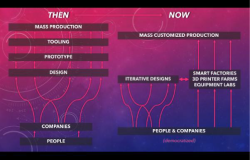 Today, with the development of 3D printing farms, smart factories, and autonomous co-bots, concepts can now be turned into reality overnight. The world is about to witness three major production pattern shifts: