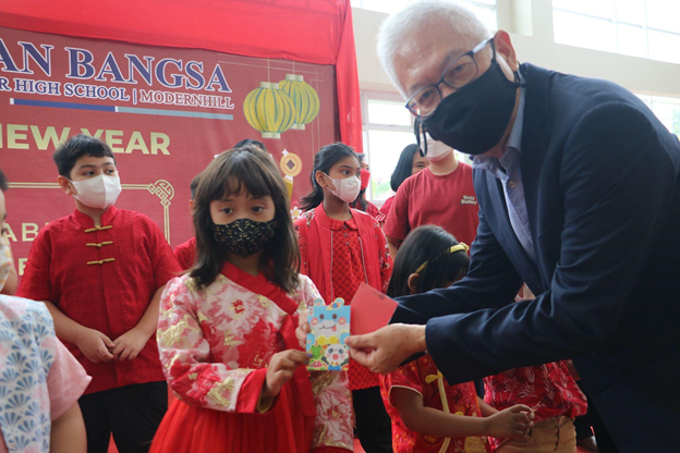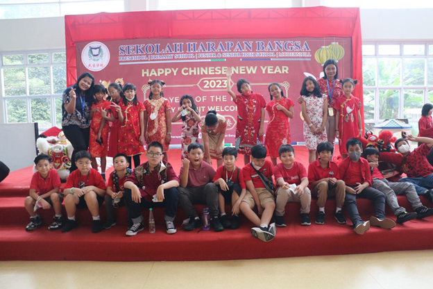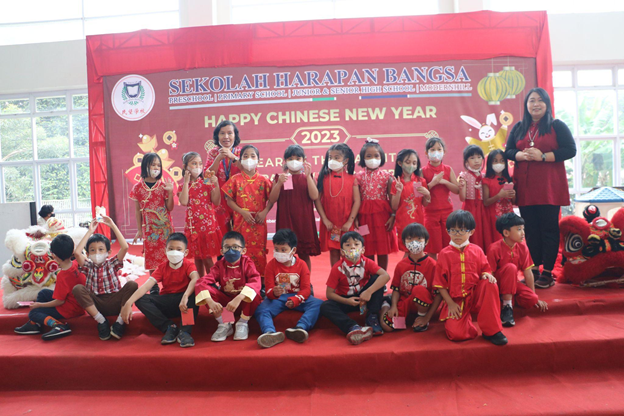 2023 年 1 月 25 日(星期三)民望现代山庄小学在SHB5大厅举行了中国新年庆祝活动。这真是令人兴奋的时刻。经过几年的在线庆祝,这次线下庆祝活动倍感温暖和愉快。而且,加上Ibu Indra T. Honoris和Mr. Purnawan Sutiono的光临,还有各班的家长的参加,让活动的气氛更加热烈了。