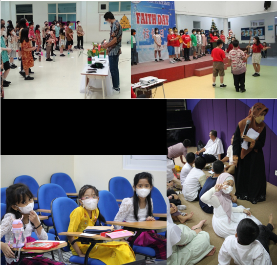Dengan adanya kegiatan Faith Day siswa-siswi dapat mengikuti upacara/ibadat sesuai kepercayaannya. Mereka dibagi dalam kelompok-kelompok sesuai agama dan melakukan ritual bersama guru-guru yang ditunjuk sebagai pendamping. Sebagai contoh siswa Kristen mengadakan acara Natal bersama di Hall Cambridge, siswa Katolik mengadakan ibadat Adven di Hall Primary, siswa Moslem mengikuti salat bersama di ruang Moslem, siswa Buddha melaksanakan kegiatan Derma di lantai 4 dan Siswa Hindu menjalani ibadah di ruang Agama Hindu.