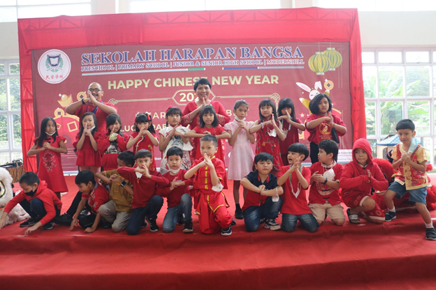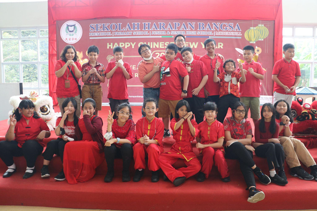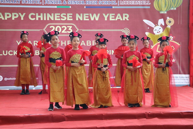 Perayaan tahun baru Imlek yang diselenggarakan di gedung fasilitas pada hari Rabu tanggal 25 Januari 2023 ini pasti sungguh sangat dirindukan kemeriahannya. Setelah sekian tahun anak-anak merayakannya secara daring, perayaan tatap muka kali ini sungguh terasa hangat dan ceria. Apalagi ditambah dengan kehadiran Ibu Indra T. Honoris dan Bapak Purnawan Sutiono serta perwakilan dari orangtua murid tiap kelas yang mengadakan reservasi sebelumnya, yang tentu turut menghangatkan suasana saat itu.