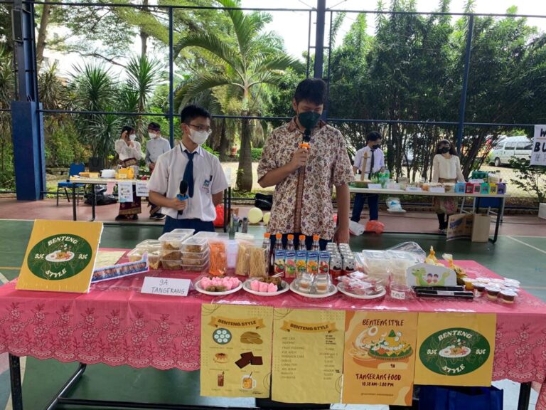2023年2月16日 民望学校高中部和初中部的所有学生都庆祝了一年一度的英文日活动。在今年的英文日,同学们制作了一个印尼传统的小吃摊。通过随机抽奖,每个班级得到了以下地区之一:坤甸、巴厘岛、雅加达、唐格朗、万隆、棉兰、邦加、巨港、巴东、日惹、亚齐和美娜多。在摊位上,同学们出售指定地区的重轻食品和饮料。同学们务必在摊位上给大家展示出食品和饮料,同时也要介绍食品和饮料的来源和做法成分,之后同学们开始贩卖自己的食品饮料和购买别的摊位的食品饮料。所有班级的总利润约为 五百万印尼盾,这笔款将捐赠给唐格朗的Putera Asih孤儿院,为孤儿院买食物和学校用品。