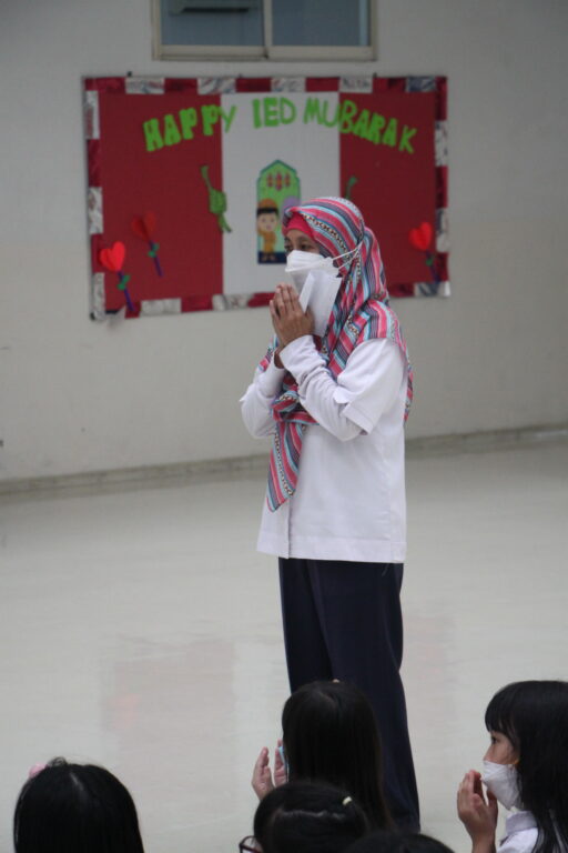 The simple event was held in the school's primary hall. In this celebration, children are taught knowledge about the meaning of halal bihalal and Eid al-Fitr.
