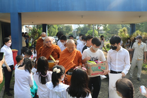 Parents of students from Kindergarten – Middle School also did not fall behind in cultivating the good deed of preparing dishes for the 5 Bikhhu Sangha.