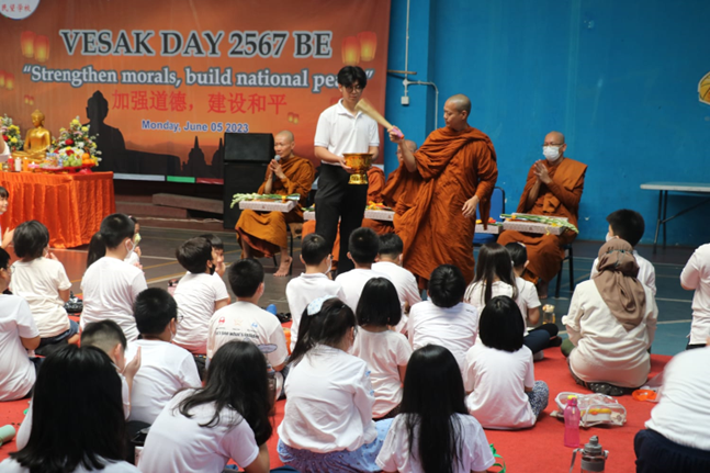 The students carried out the ‘Pindapatta' activity which was attended by 5 Sangha monks and continued with the Vesak pose and Puja Bakti together and closed with Amisa Dana.