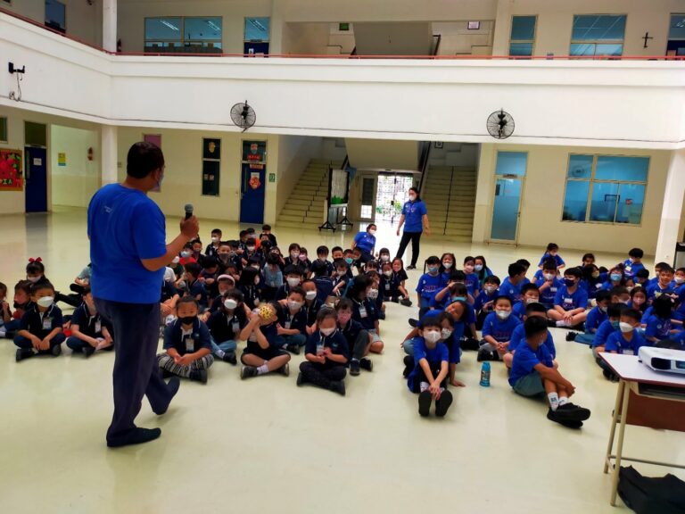 学生们非常高兴回归他们的“第二个家园”民望学校小学部。所有的学生和老师都聚集在教室的走廊上,由一名六年级的学生带领,开始新的一天,进行誓言和祈祷。然后,所有三年级到六年级的学生去体育馆进行体操,通过介绍老师来开启迎新活动。学校的新生由校长Emy女士带领。