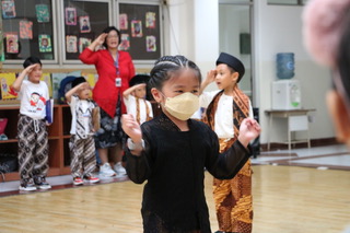 2023年8月18日星期五,民望学校幼儿园欢庆印度尼西亚共和国独立日,主题活动紧扣传统游戏。当天,所有民望学校幼儿园的女学生们身着富有特色的传统服装,被称为恩琴短款凯巴亚(Kebaya Encim,印尼传统女装),而男学生们则穿着洁白的T恤和巴蒂克裤子。