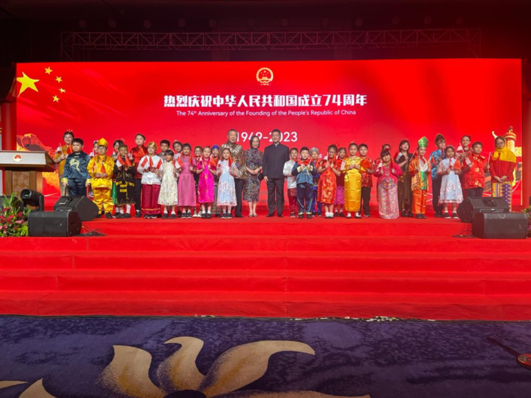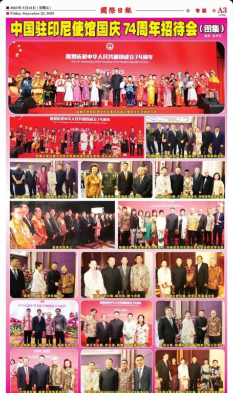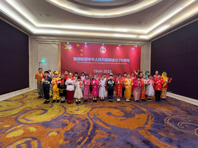 2023年9月20日星期三,位于现代城民望学校小学生参与了在南雅加达莱佛士酒店举行的中国国庆日庆祝活动。