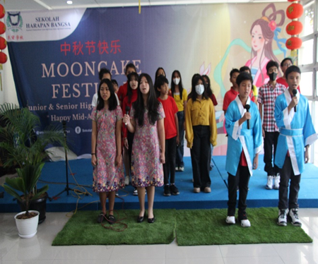 Pada tanggal 29 September 2023, Sekolah Harapan Bangsa Modernhill Sekolah Menengah dan Tingkat Atas mengadakan acara untuk merayakan Festival Kue Bulan. Acara dilaksanakan di Gedung Serba Guna Gedung 4 pada pukul 13.00, diawali dengan doa pembuka, dilanjutkan dengan sambutan oleh Kepala SMP Ibu Sisilia Juni, dan kemudian Festival Kue Bulan pun dimulai. Setiap kelas mempersiapkan acaranya sendiri, dan siswa lain sangat menikmatinya. Ada enam program dalam acara ini, antara lain pengenalan tiga bahasa tentang sejarah Festival Pertengahan Musim Gugur, paduan suara Mandarin dari lagu-lagu Pertengahan Musim Gugur, nyanyian band, nyanyian “Di Zi Gui”, Seni Gunting Kertas Festival Kue Bulan, dan Pertunjukan Peragaan Gaya dan Busana. Program paduan suara adalah sebuah lagu berbahasa Mandarin tentang Festival Pertengahan Musim Gugur yang dibawakan oleh masing-masing siswa dari siswa-siswi SMP Intermediate 1, Siswa-siswi SMA grade Advance dan Intermediate . Kostum dalam peragaan busana tersebut terbuat dari plastik, kertas atau kain bekas, dirancang dan dibuat oleh siswa kelas X dengan mengacu pada budaya Tionghoa. Selama kegiatan berlangsung seluruh siswa mengikuti program kelas dan suasana sangat aktif. Pada akhirnya setiap kelas berfoto bersama, dan Homeroom setiap kelas membagikan kue bulan kepada siswanya. Acara ini berakhir dengan sukses pada pukul 14.50.