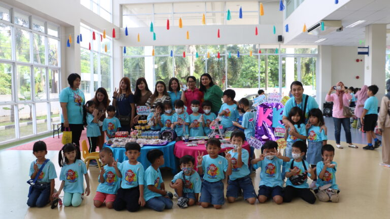 Each class has different things to sell. Kiddy Club class sells stationery and ice cream, Play group sells Traditional toys and snacks, Kindergarten A sells Modern toys and juice, Kindergarten B sells Accessories, stickers and banana choco sprinkles. All students, learn to sell and buy some products.