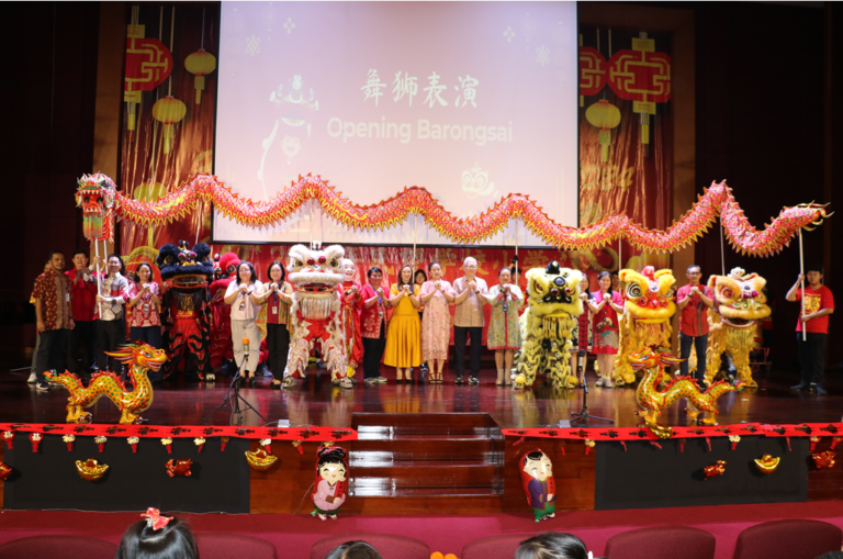 The event was opened by three MCs presenting and greeting the children. Then Ms Joice gave us an opening prayer, and continued with Mr Purnawan Sutiono and Ms Emy giving opening remarks. The first event was a dragon and lion dance performance by the lion dance team from the Junior and Senior High School . Then the event continued with performances from the primary school students , namely dance performances from the extracurricular ballet and modern dance, singing performances from students from grades 1-6, taekwondo and the pianika ensemble. The most eagerly awaited performance was the liong and lion dance performances from the junior high school lion dance team. The children were very enthusiastic about giving ang pao to the lion dancers. Before the event ended, Ms Kristina delivered a closing prayer.