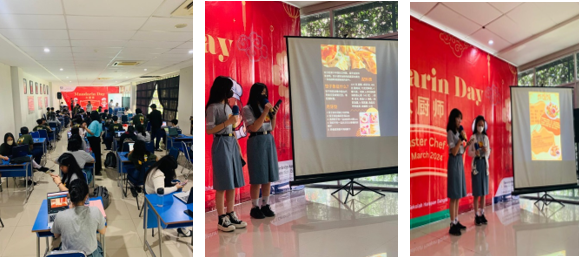 民望学校现代山庄中学于2024年3月4日举办了本学年第2学期的中文日活动。本次活动旨在了解中国美食文化。活动内容是每班要制作出五种中国美食,分别是面条,水饺,混沌,烧麦,包子。每班学生分成五组,每组要在食堂现场完成一种美食,同时每组还要出1-2位同学,在礼堂制作本组美食的中文海报,完成后现场演示PPT并用中文讲解。