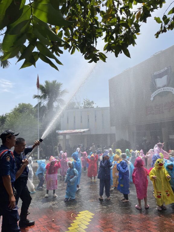 上周四,2024年10月17日,孩子们聚集在民望学校5号教学楼的大堂,进行祈祷、唱歌并欢迎消防员的到来。他们聆听了消防员讲解灭火时使用的装备,并学习了火灾发生时的应对措施。之后,孩子们在消防员的指导下轮流体验了乘坐消防车的机会。活动结束后,孩子们还一起玩水,愉快地结束了这一天的活动。