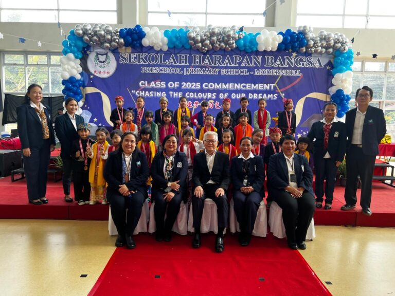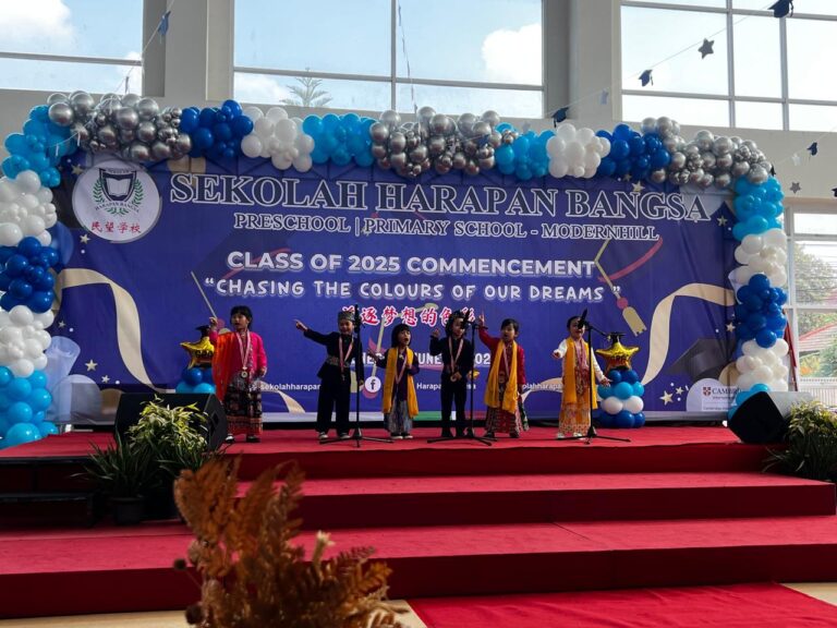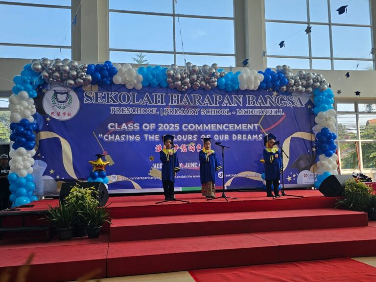 活动的最后,孩子们深情演唱了献给老师、朋友和父母的歌曲。在演唱《献给爸爸妈妈》的歌曲时,孩子们送上了一束写满感恩之情的鲜花。许多家长为孩子们的真挚举动而深受感动。作为庆典的高潮,大班的学生们再次表演了“Jali Jali”歌舞,表演的开始和结束都融入了传统的贝塔威押韵诗(pantun)。所有嘉宾都被孩子们精彩的表现深深打动。这场庆典为他们在民望学校幼儿园的旅程画上了圆满的句号。愿所有毕业生在未来的学习旅程中继续取得成功,为父母和老师争光,带着民望学校的美好名声迈向新的教育阶段。